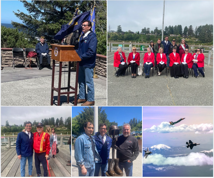 I had the great honor of speaking at both the Brookings Harbor and the Gold Beach Memorial Day Observances. We were joined by Daughters of the American Revolution and a flyover from F-15 Eagle fighter jets from Kingsley Field. Pastor Mike Queseda and Spinner’s Restaurant of Gold Beach Owner Dillion at Fallen Soldier statue.