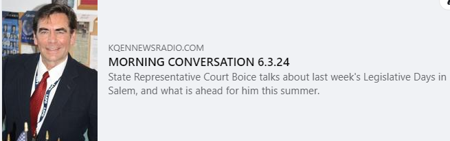 Recently I was on with Kyle Bailey at News Radio 1240 KQEN to discuss Legislative Days and what is in store for this summer. You can listen to the interview here.