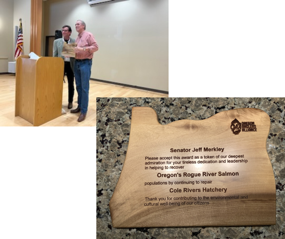 At the Oregon Anglers Association I presented Senator Merkley with a Salmon Recovery Plaque.
