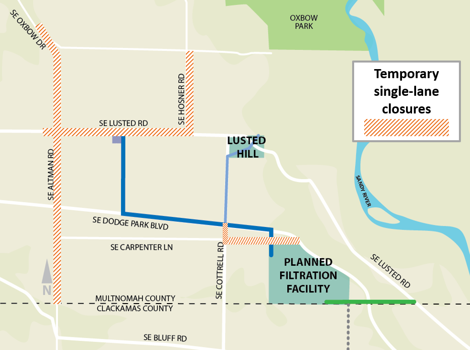 Work at the raw water pipeline/tunnel site on Lusted Road near the Clackamas/Multnomah county line includes: