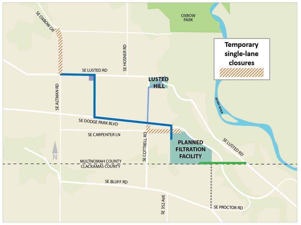 Work at the raw water pipeline/tunnel site on Lusted Road near the Clackamas/Multnomah county line includes: