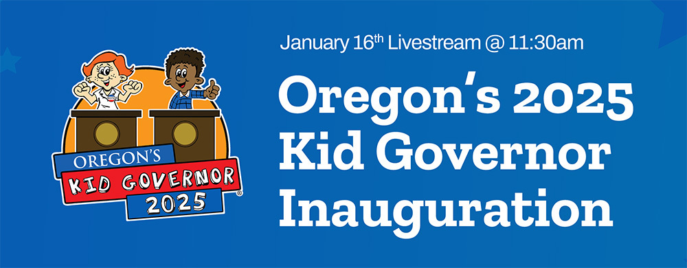 Save the Date: The Annual Inauguration Ceremony of the 2025 Oregon Kid Governor January 16th at 11:30 a.m.