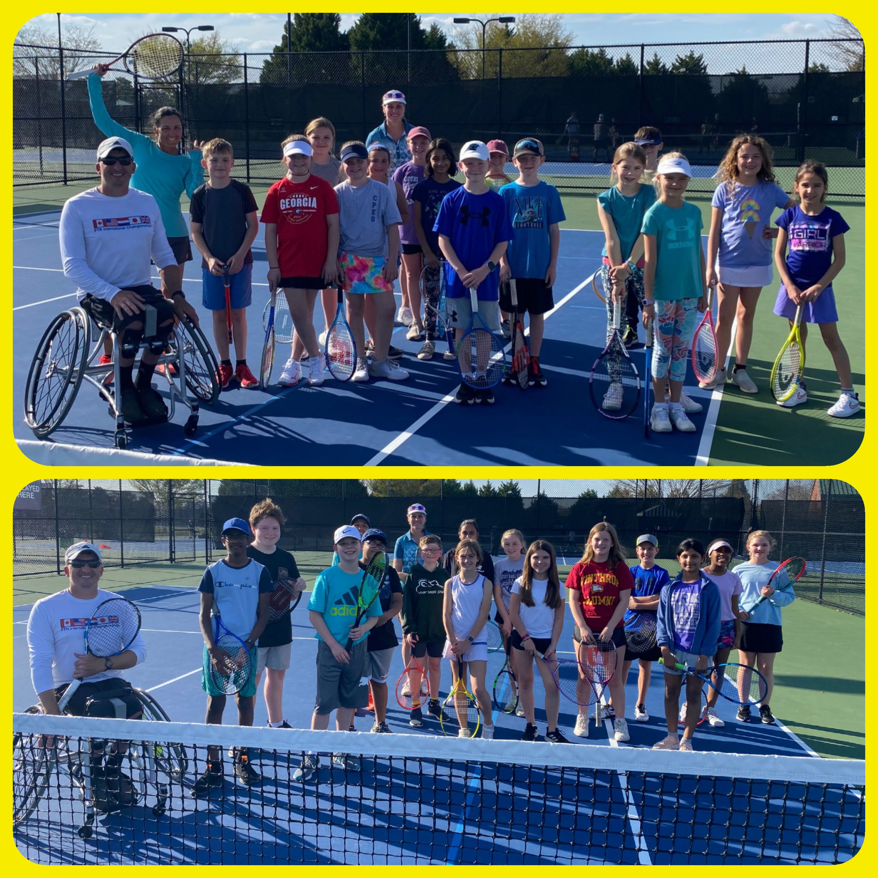Tennis 101 Clinic started- Saturdays Noon - 1 PM Designed for beginners to learn the game of tennis. Tennis 102 Clinic started - Saturdays 9 AM - 10:30 AM The focus will include strokes with placement, strategies and positioning. Cherry Park Elementary School Physical Education program introduces the game of tennis to the students. Pic