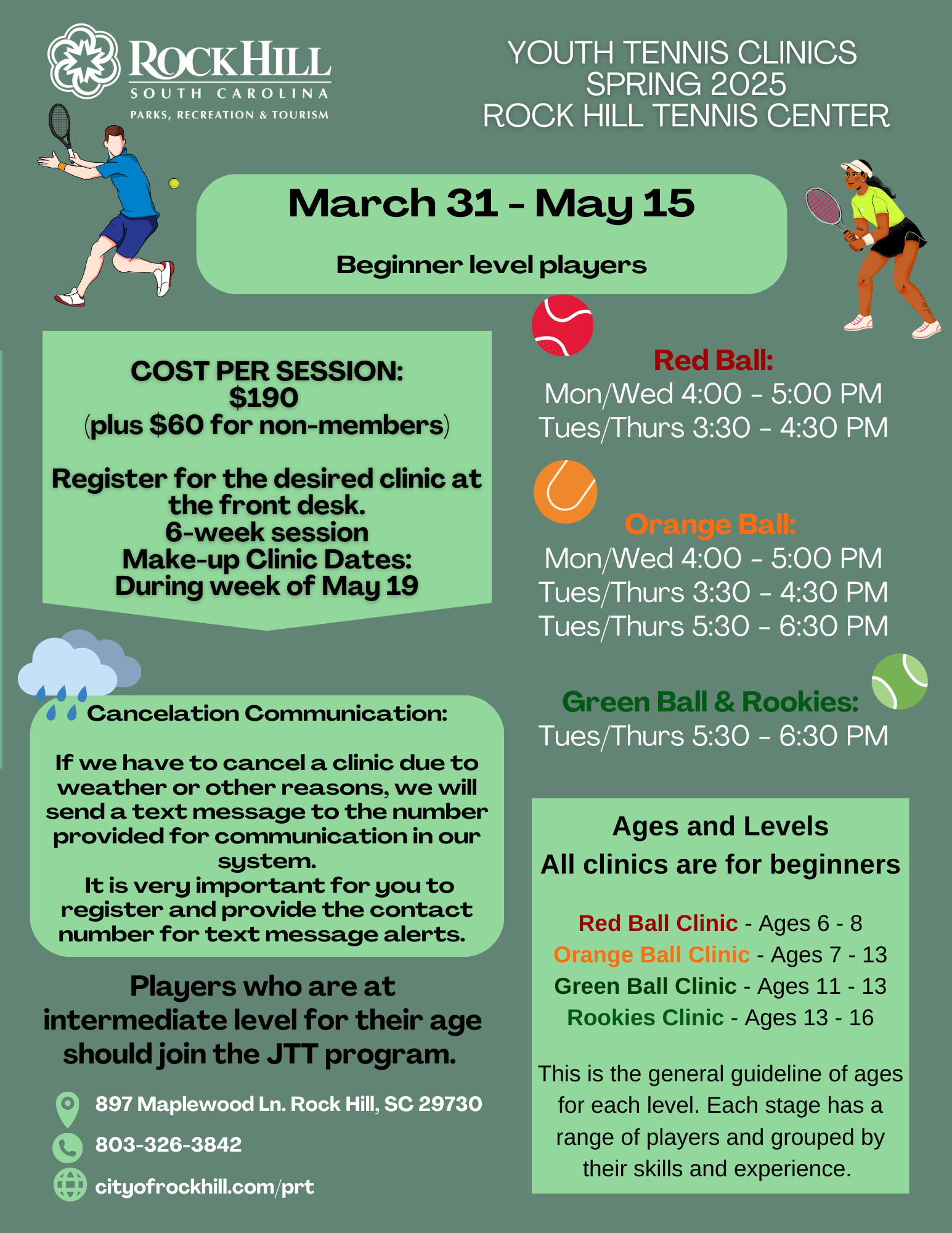 - Youth Tennis Clinics March (Red, Orange, Green) Flyer