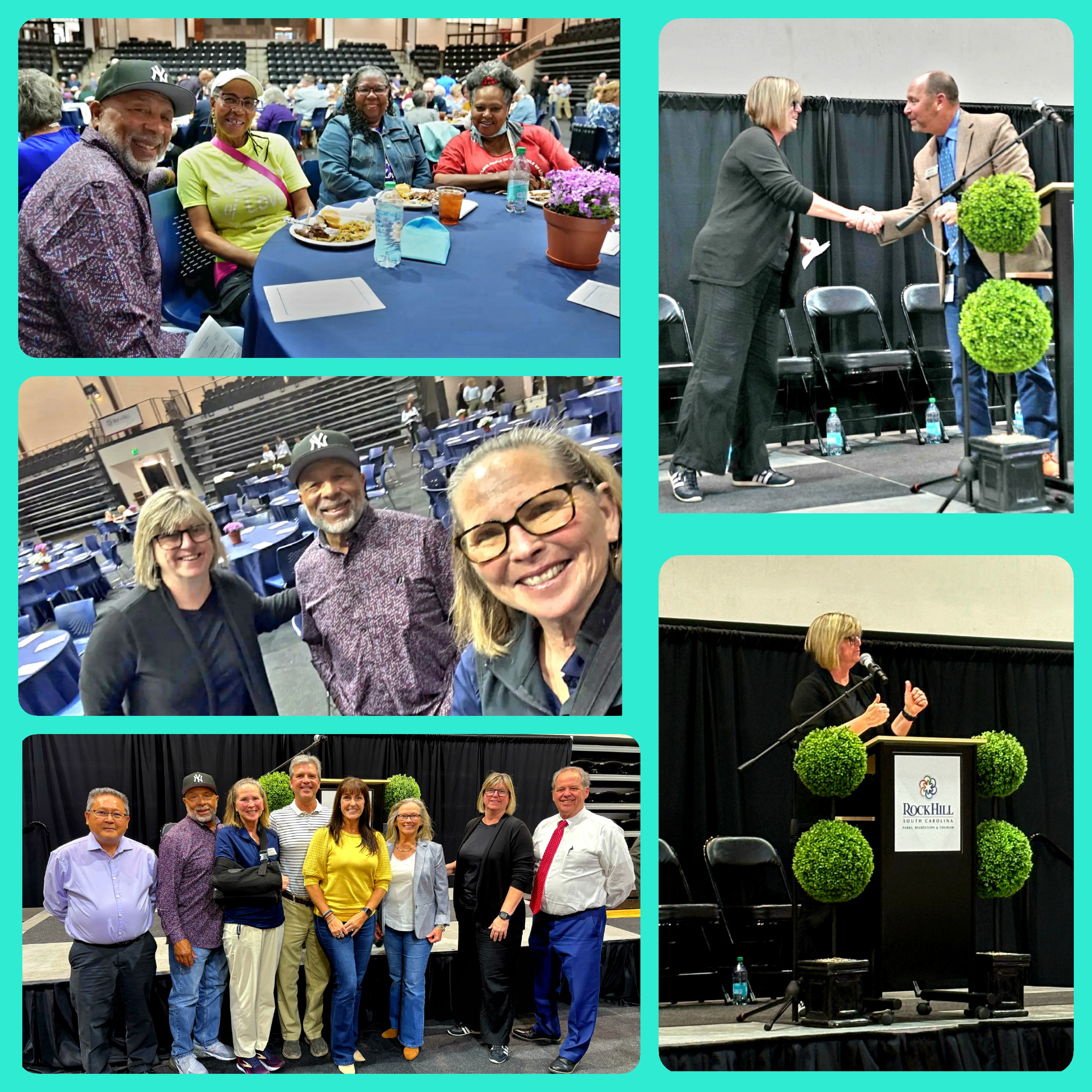 Jennifer Gregg, CEO of United States Tennis Association (USTA) South Carolina spoke at the Rock Hill Parks, Recreation & Tourism (PRT) Volunteer Celebration with 450 attendees. Jennifer's wisdom and passionate insight regarding the importance of volunteering was received with enthusiasm and inspiration. Thank you, Jennifer, and congratulations to all award winners. Photo