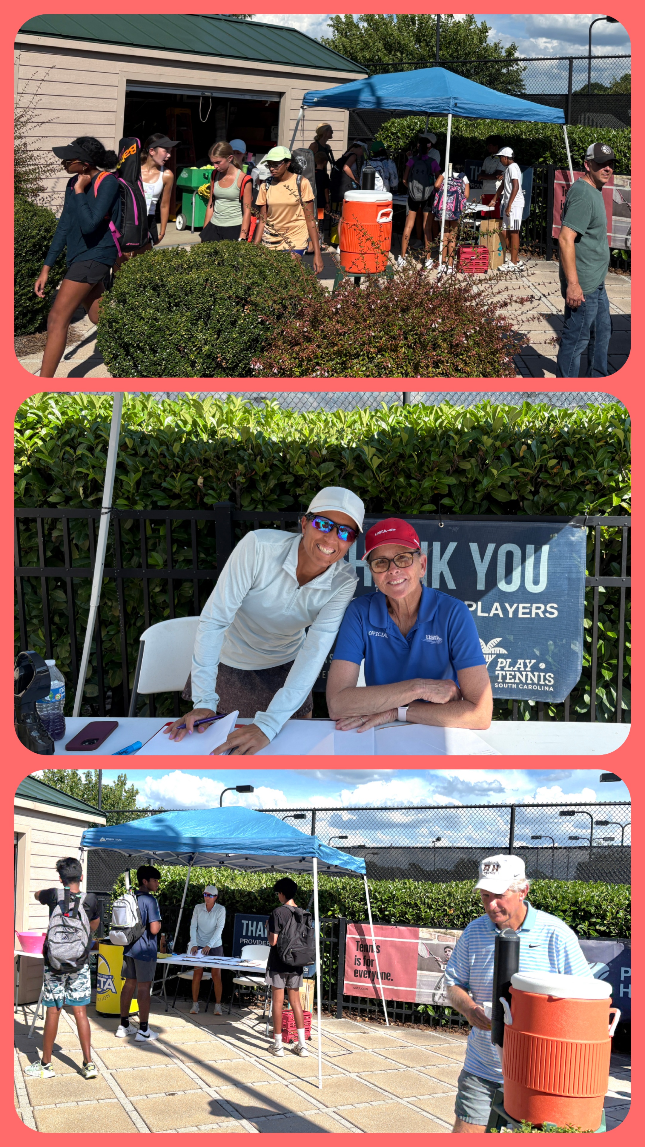 The RHTC 2025 Summer Tennis program is finishing up. Coach John and his Green Dot ball players endured the heat with ice pops and the mister tent. They are all smiles playing good tennis and having fun on the final day! Photo