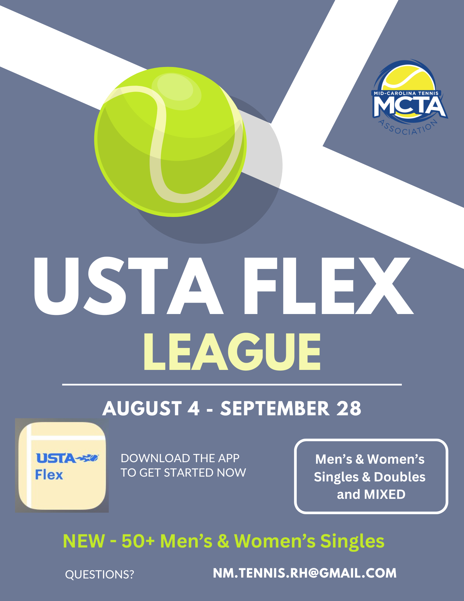 - USTA Flex League - Aug 4 - Sep 28 - Registration is open now! Flyer