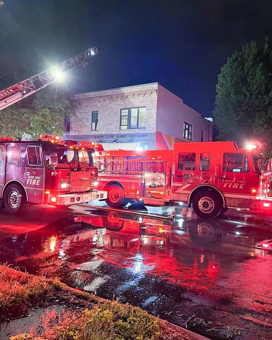 Emergency vehicles outside Groundswell in the Midway.
