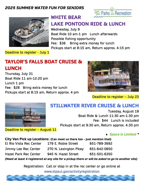 Summer Activities with Parks and Rec: Sign up for yoga, cribbage, kickball, arts & crafts, martial arts, cooking classes, book clubs, sports clinics, video game tournaments, dancing, movie nights, and more! Browse and register for summer activities. Just for seniors: join Parks and Rec for Summer Water Fun! See the flyer below and register here.