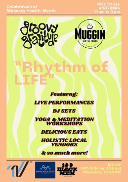 NEXT SATURDAY 🗓️ Celebrate #MinorityHealthMonth with @groovy_gratitude and @muggin_coffee at the Rhythm of Life Uptown block party on April 27th from 11am-3pm! 🌿🧘🍵