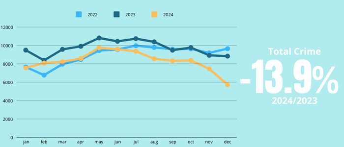 Reductions in Crime 2024: Compared to 2023 and 2022