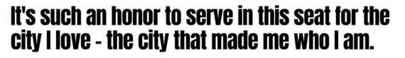 I wake up feeling privileged because it's such an honor to serve in this seat for the city I love - the city that made me who I am. Everything I am is because of this city and because of you all.