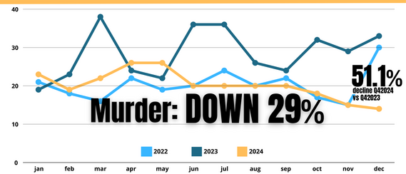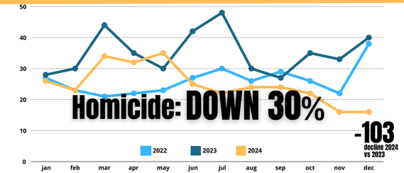 Homicides are Down 30% - with 100 fewer homicides in 2024