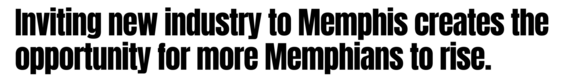 And what if those businesses each employed 100 Memphians? That would mean 300 families in our region now have more wealth, more economic power, and more stability. And what if some of those families used their newfound stability to enter the home market and take advantage of the low housing costs in Memphis and the opportunities that come with home ownership? That would mean the chance for each of those Memphians to create wealth and stabilize a neighborhood. Inviting new industry to Memphis creates the opportunity for more Memphians to rise.