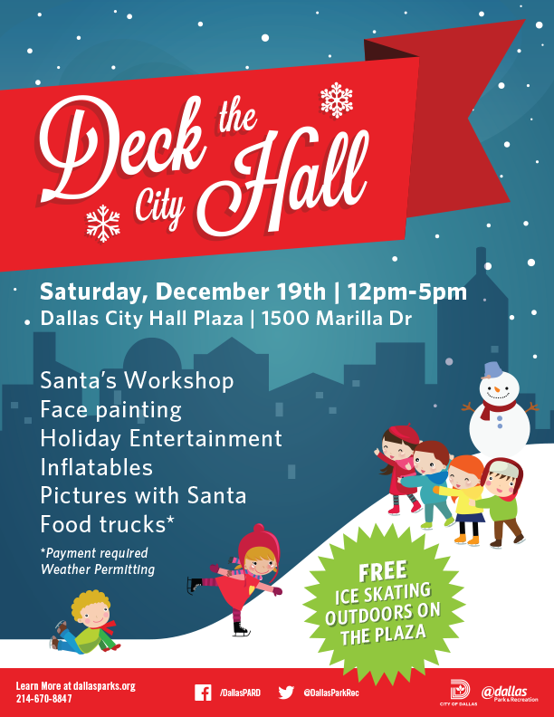 Deck the City Hall is a free, family-friendly holiday festival at City Hall Plaza. It’s all happening Saturday, December 19 from 12-5 p.m. Enjoy music, food trucks, train and carriage rides and photos with Santa. Kids, be sure to visit Santa’s Letter Writing Workshop and don’t miss your chance to ice skate on the Plaza