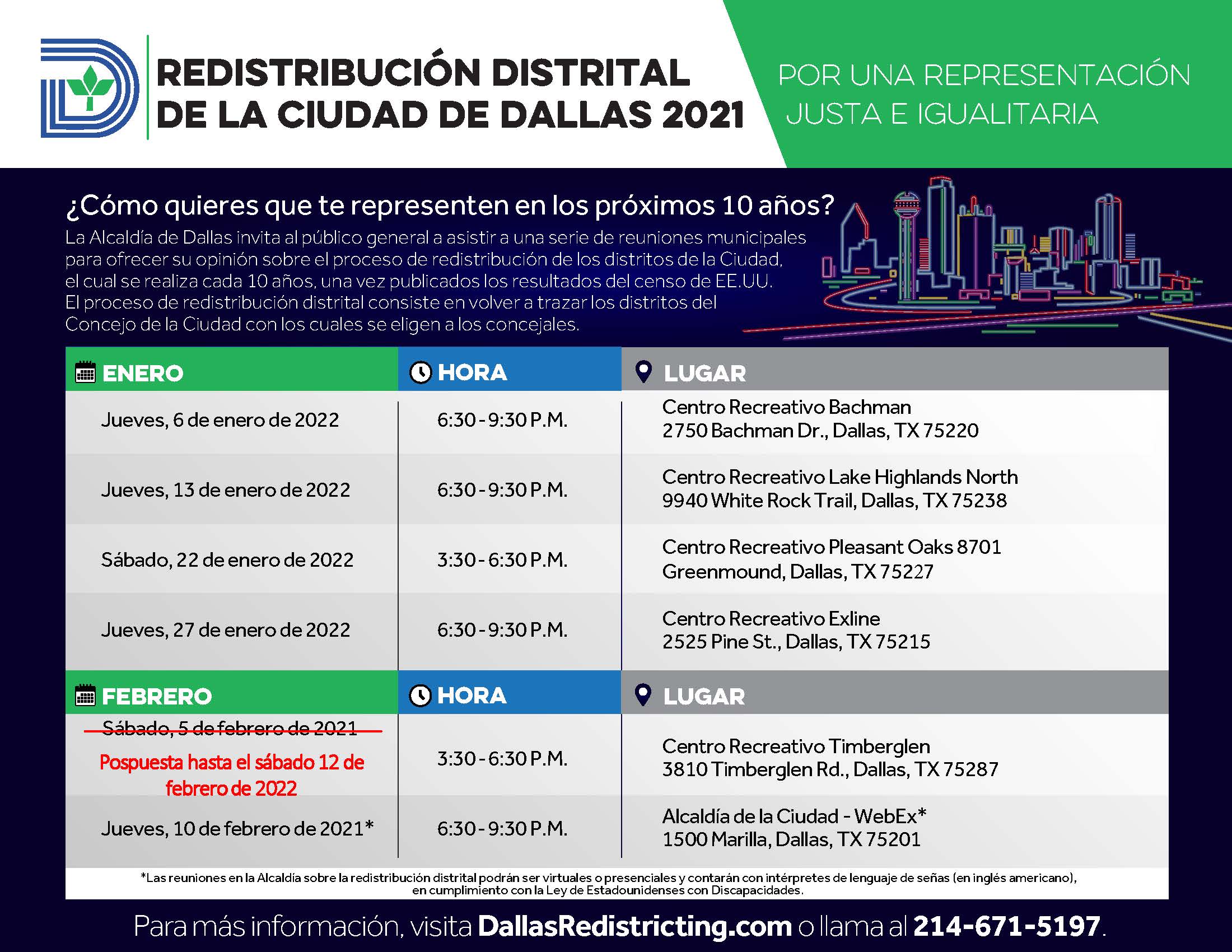 For a complete list of meetings, and additional information, go to DallasRedistricting.com or call 214-671-6197.