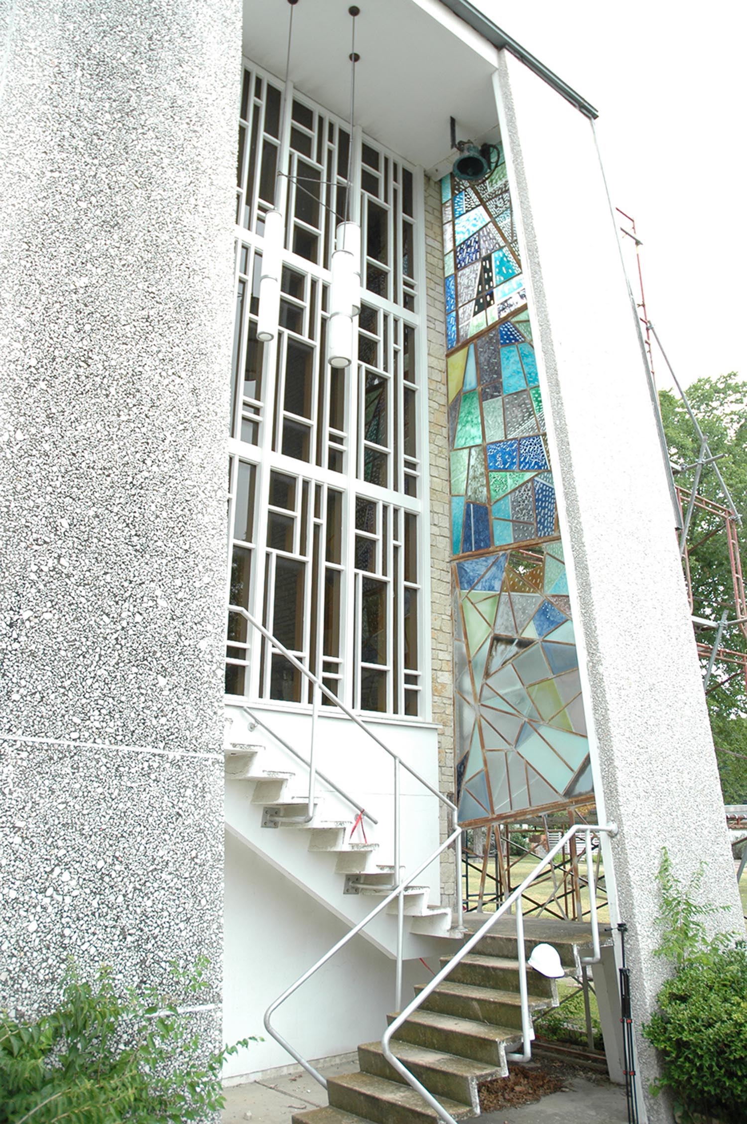Four stained glass windows created by Medellin for the Trinity Lutheran Church were scheduled for demolition in the spring of 2013 to make way for the new YMCA at White Rock. Octavio’s student, artist David Hickman alerted Craig Reynolds of BRW Architects and, through the efforts of the Office of Cultural Affairs and members of the Cultural Affairs Commission and the Dallas City Council, the YMCA of Metropolitan Dallas donated the windows to the City providing the opportunity to save this historically significant work. The three additional windows are being restored and will be installed at the Dallas City Performance Hall in the July 2015.