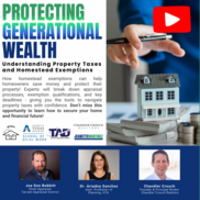 On Wednesday April 2nd we will presented, Protecting Generational Wealth – Understanding Property Taxes and Homestead Exemptions. This virtual presentation featured three experts that broke down the appraisal processes, exemption qualifications, and key deadlines. Please click the button below to take advantage of this FREE presentation.