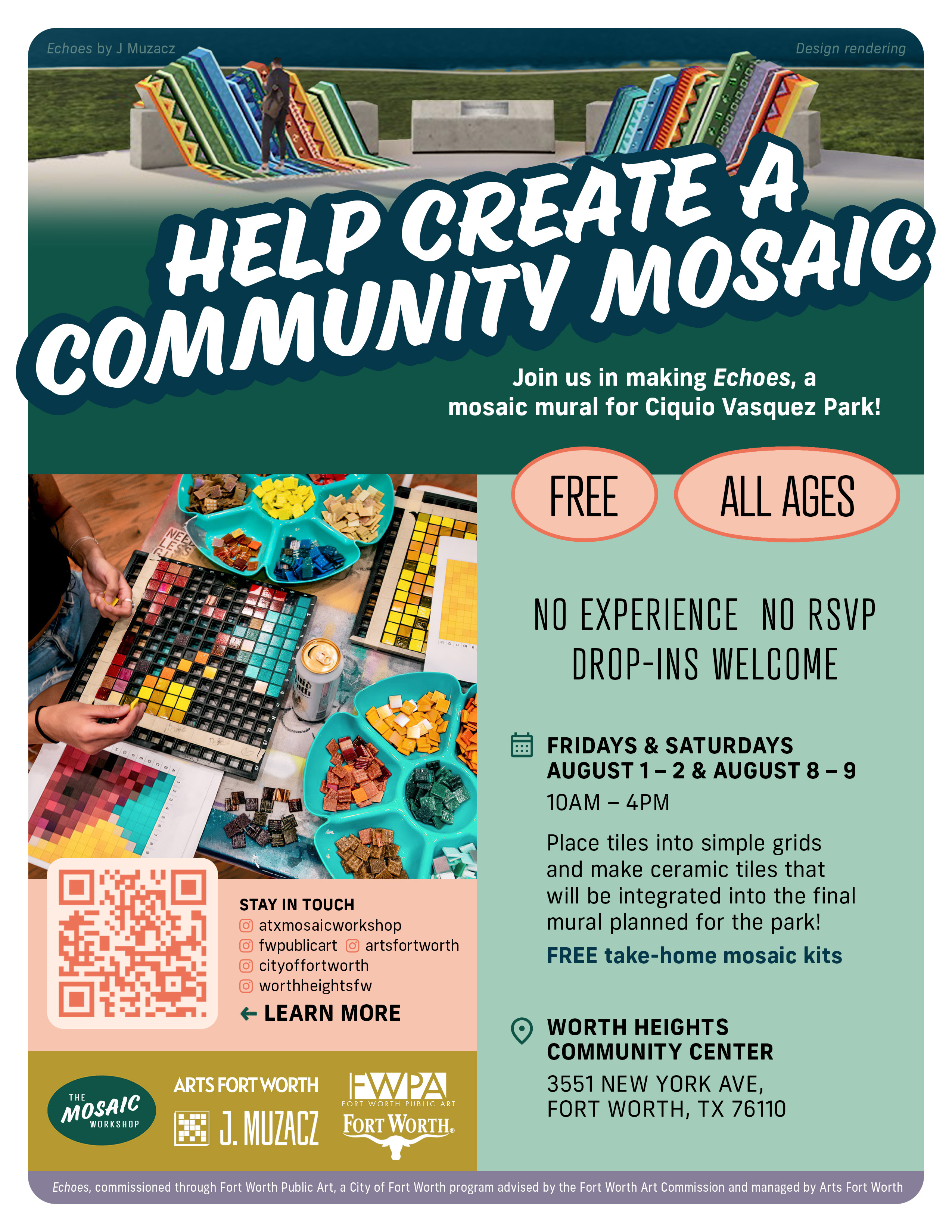 Led by artist J. Muzacz, the workshops brought together residents of all ages and backgrounds to handcraft ceramic tiles that will be featured in the final mosaic.