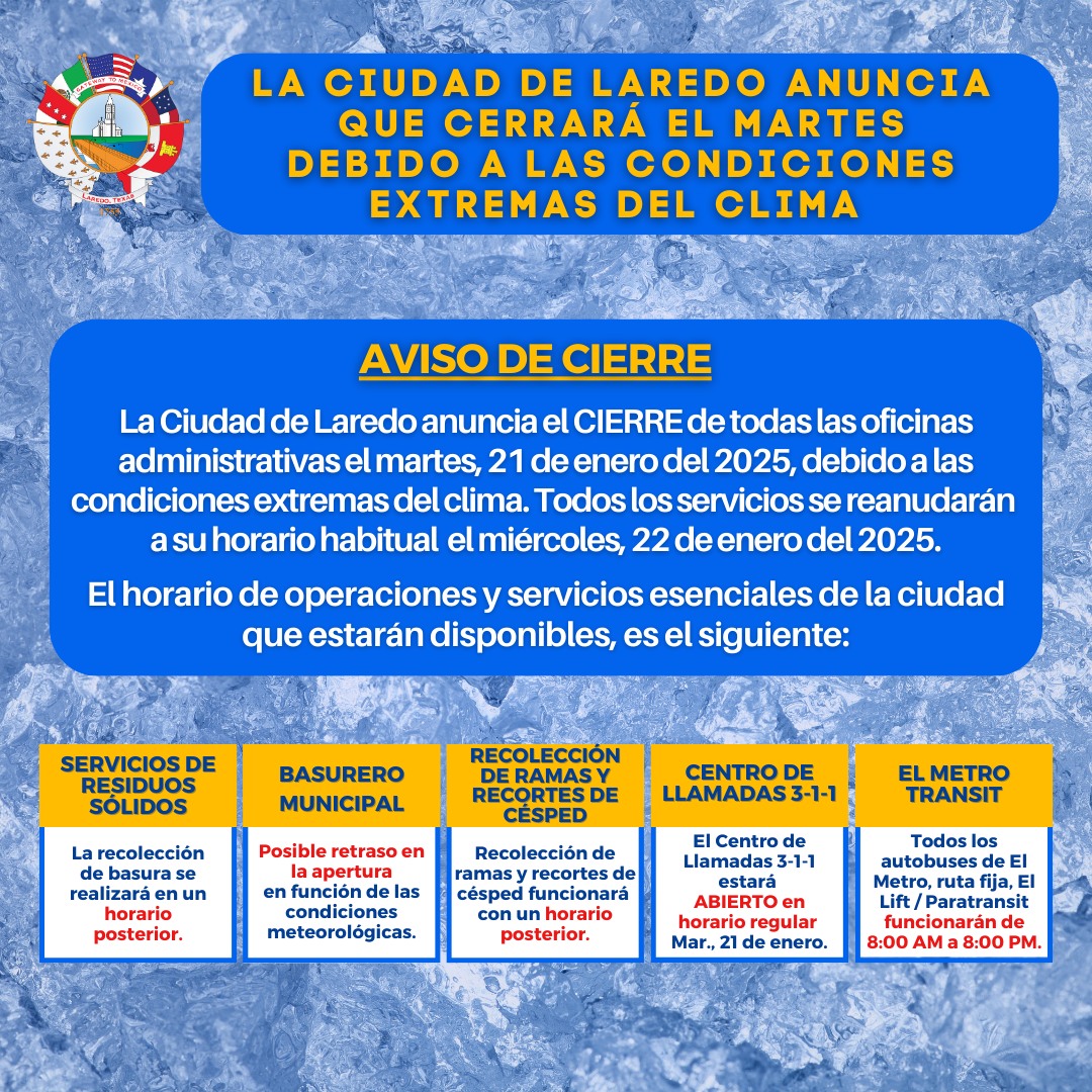 Date/Time: Wednesday, January 22, 2025, at 12:00 PM Location: 110 Calle del Norte, Laredo, Texas 78045