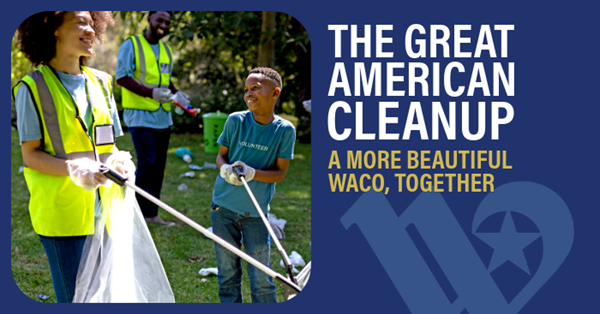 Join your city council district for The Great Waco Cleanup! Our Solid Waste Services crew is partnering with Keep Waco Beautiful and you for a citywide cleanup event from 9 to 11 a.m. on on Saturday, April 20. Click the link below to find your cleanup location and sign up to volunteer.