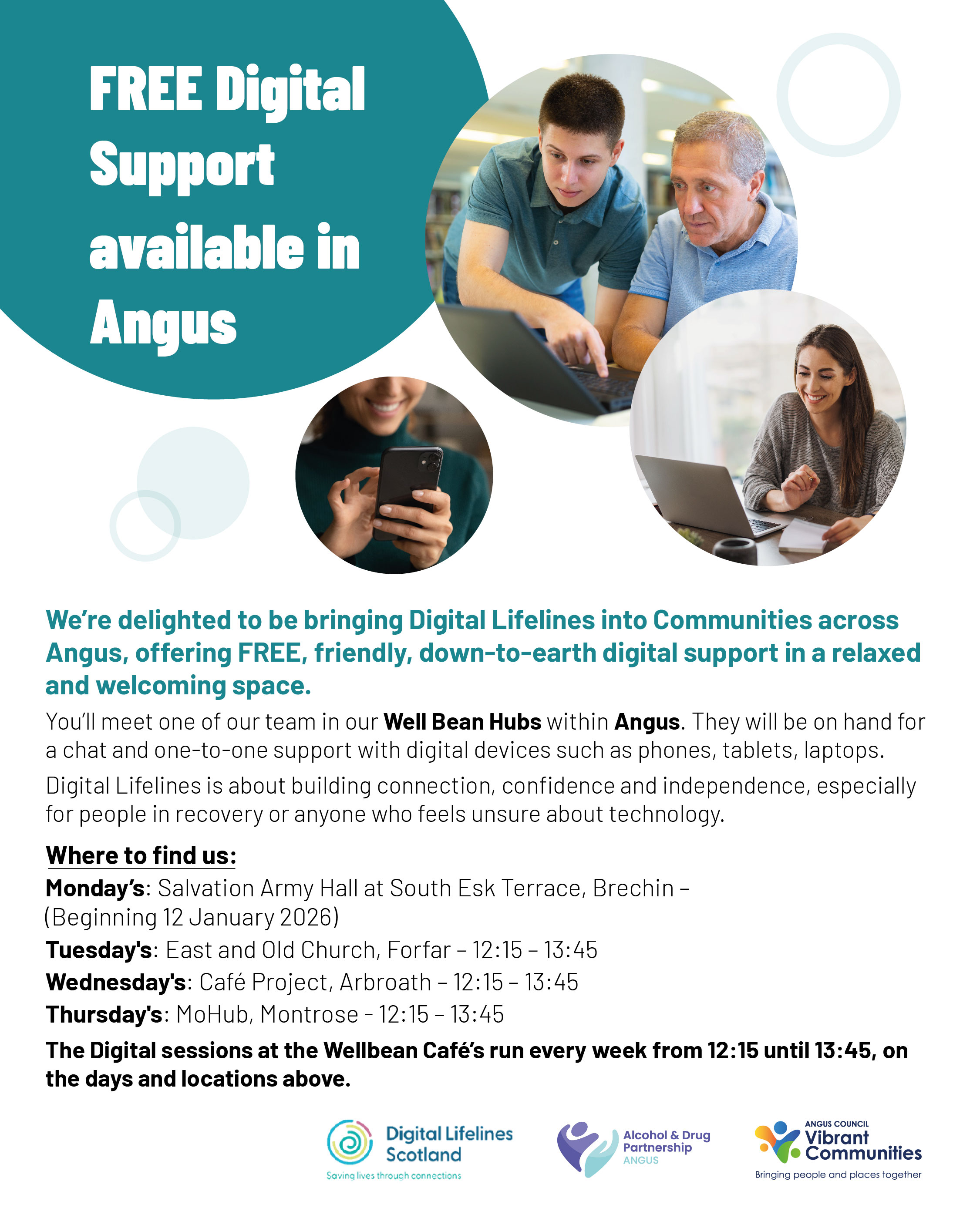 Digital Lifelines is about building connection, confidence and independence, especially for people in recovery or anyone who feels unsure about technology. Sessions begin on 12 January 2026 and are held between 12.15pm to 1.45pm.