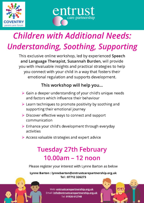 In partnership with Coventry's Parent Carer Forum (PCF) entrust are hosting a range of exclusive online workshops for parents and carers. See below for details of the latest session: