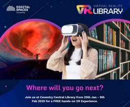 Get ready to be amazed by our new collection of VR experiences right here in your local library. Supported by the BFI with National Lottery funding, this exciting national VR tour will visit our libraries twice throughout the year starting 25 Jan - 9 Feb 2025 at Coventry Central Library] with a thrilling program of VR experiences, including: Wallace & Gromit in the Grand Getaway, The Philharmonic Orchestra's The Lark Ascending, Monoliths XR and more awe-inspiring VR experiences to be announced soon!