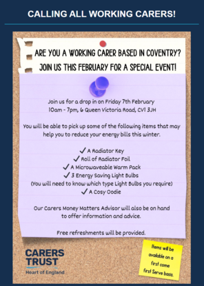 Are you a working carer based in Coventry? Join us this February for a special event!