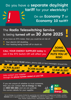 Call your energy supplier today to ask if the Radio Teleswitching Service switch off will affect you. Doing nothing puts you at risk!