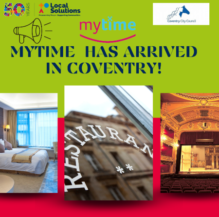 We have exciting news! We would like to share information with you about a new venture that has arrived in Coventry to support carers. Mytime offers carers (and their loved ones) a chance for a break, whether that be a meal out, a stay at a hotel or tickets to watch a local sporting event. Please keep reading to find out how this can benefit you!