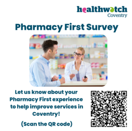 Healthwatch Coventry are carrying out this survey to see how well the Pharmacy First services are working for the people of Coventry. Pharmacy First has been in operation since January 31, 2024.