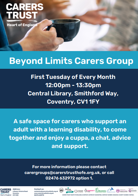 A safe space for carers who support an adult with a learning disability, to come together and enjoy a cuppa, a chat, advice and support.