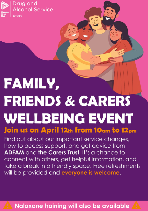 Change Live, Grow the Drug and Alcohol Service is holding a Family, Friends and Carers Event on Wednesday 12 April from 10am to 12noon at 1a Lamb Street, Coventry, CV1 4AE