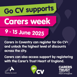 Did you know if you or someone you know is an unpaid carer, you can register for a free Go CV card and be entitled to Go CV+ the highest level of discount for Coventry residents on partner events, activities and attractions?