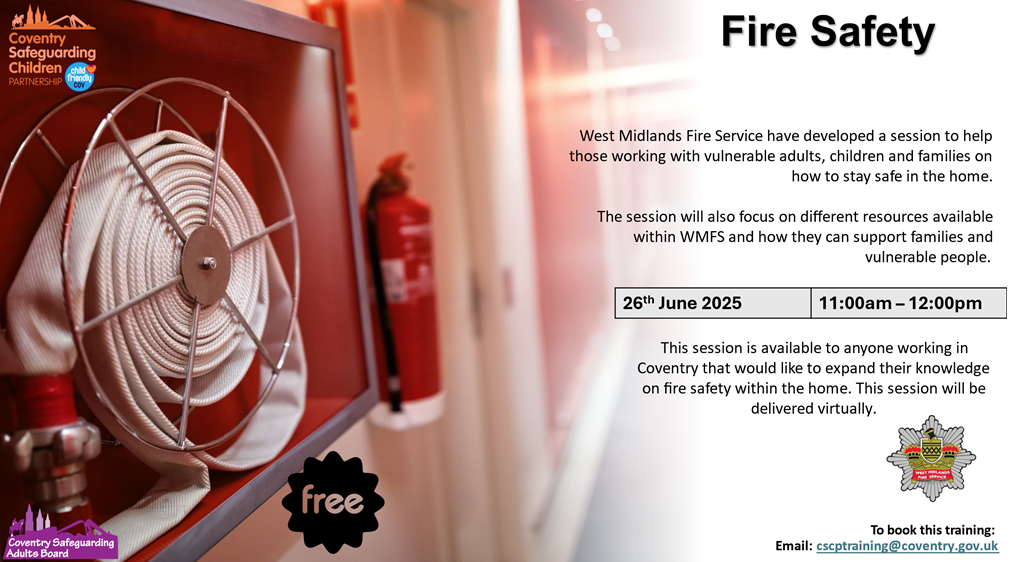 West Midlands Fire Service: Fire Safety webinar - 26 June, to book your space please email cscptraining@coventry.gov.uk