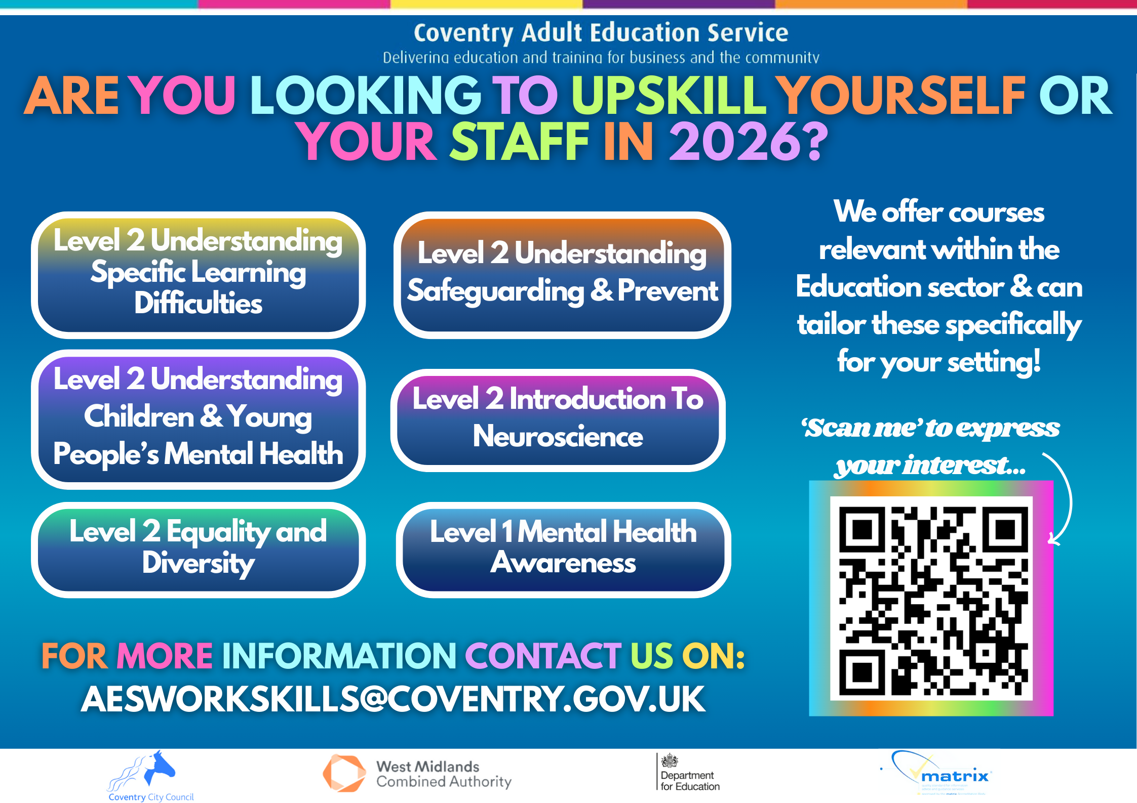 Are you looking to upskill yourself or your staff in 2026? Please contact aesworkskills@coventry.gov.uk for further information.