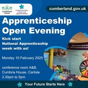 Our Early Careers and Apprenticeships team are hosting a special open evening for budding apprentices. It will be held on Monday 10 February 2025 in Conference Room A & B at Cumbria House, Carlisle, from 3.30pm to 5pm.