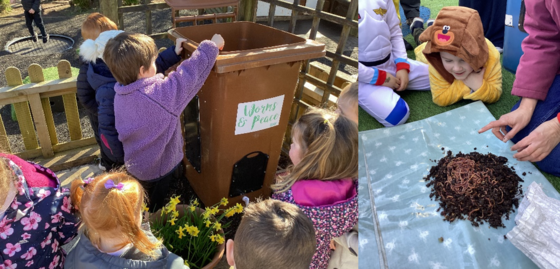 Wormeries provide a fantastic opportunity for the children to learn about composting while caring for worms. Worm manure is full of beneficial microorganisms that support healthy plant growth, so will be used to help the nursery children to grow plants and vegetables.