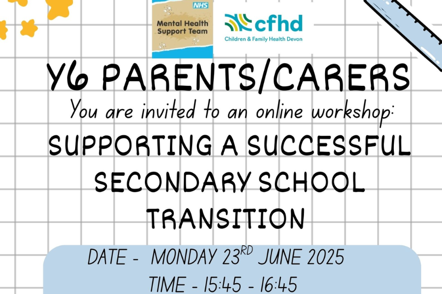 Children and Family Health Devon's (CFHD) Mental Health Support Team in Schools (MHST) team will be running a free online transition workshop in June for parents and carers whose children will be moving up to year 7 in September 2025.