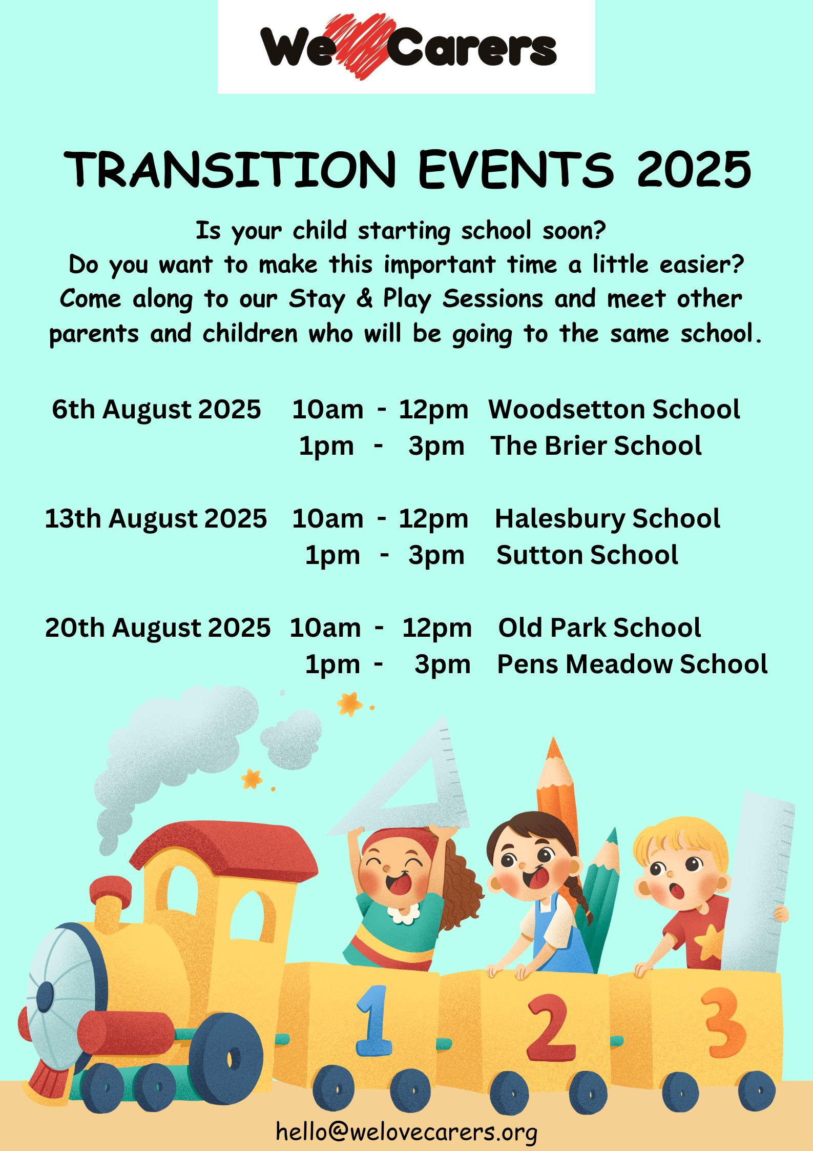 School transition sessions are being held at the centre for September starters see poster for dates for each school. Contact them via email hello@welovecarers.org or telephone 01384 396626 for further information on any of the above.