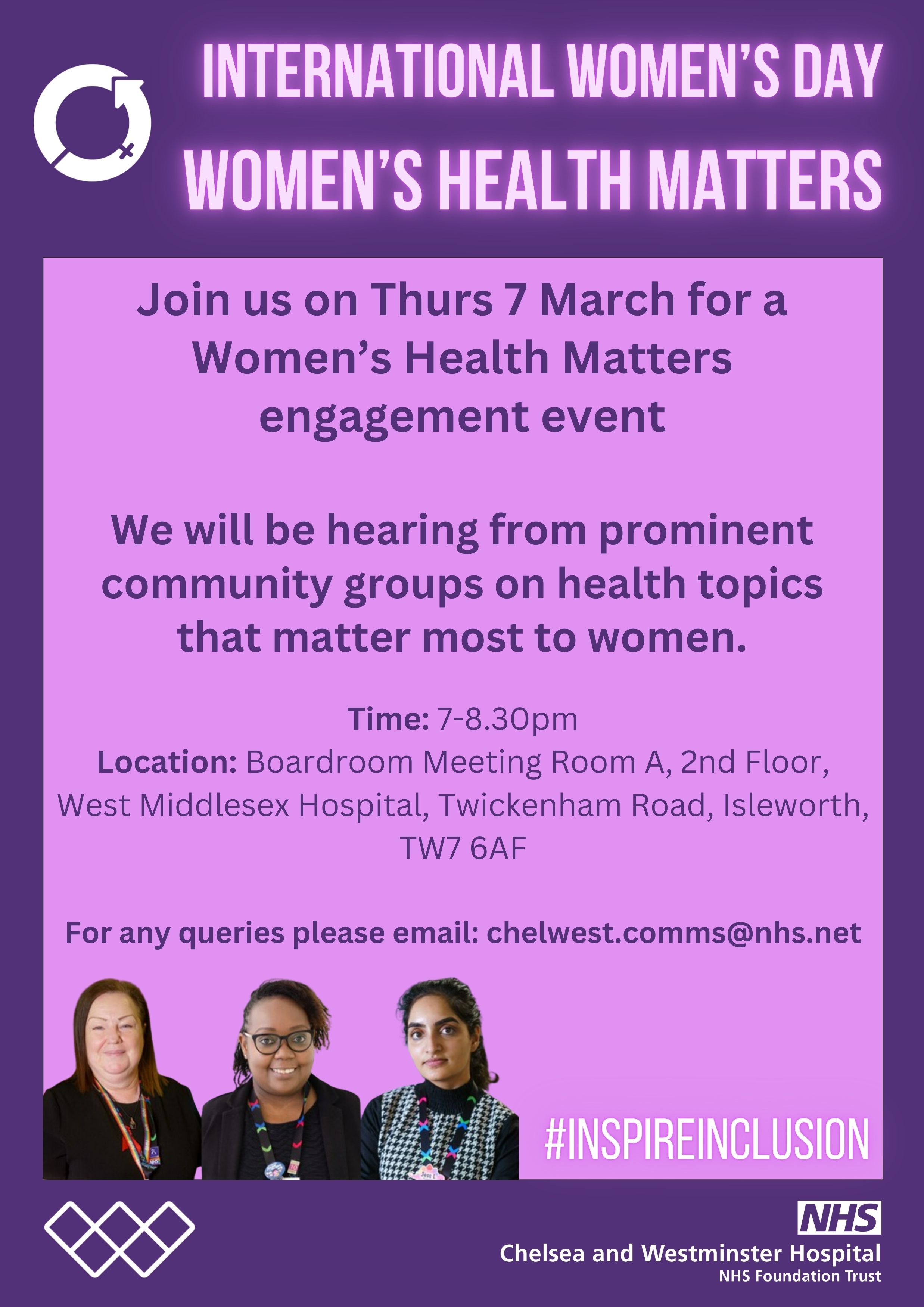 Chelsea and Westminster Hospital Foundation Trust is celebrating International Women’s Day with a community dialogue event on Thursday, 7 March.