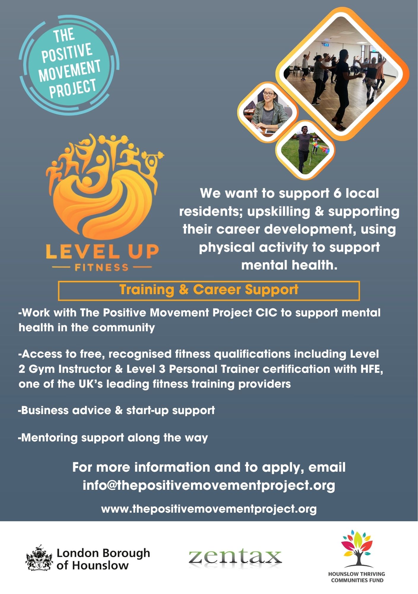 The Positive Movement Project's Level Up Fitness programme will support six residents in upskilling and developing their career by using physical activity to improve mental health.