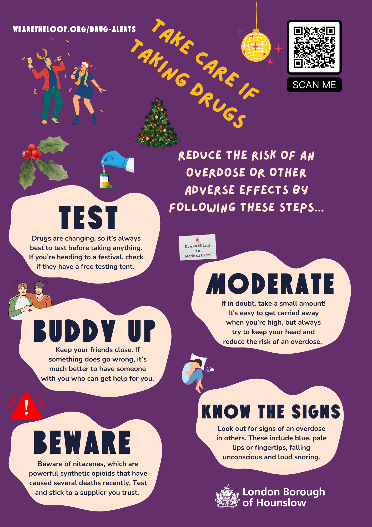 Recreational drug use is likely to increase over the Christmas and New Year period. The best way to stay safe is by not taking drugs. However, if you are taking drugs, make sure you are aware of how to reduce the risk of an overdose and other adverse effects.