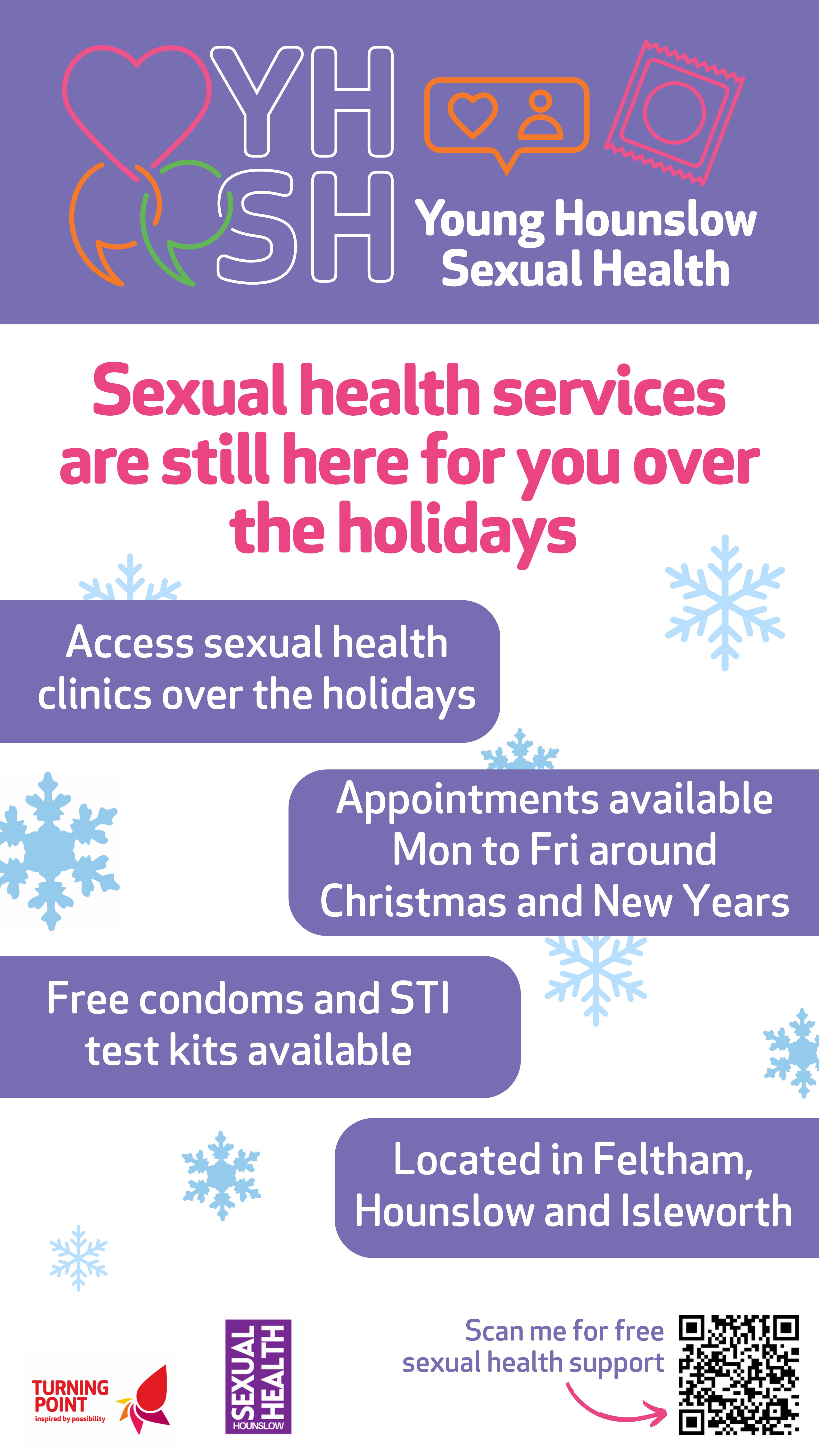 Their services will still be available over the holiday period, including around Christmas and New Year. You will still be able to access sexual health clinics and book appointments from Monday to Friday. Free condoms and STI testing kits will also be available.