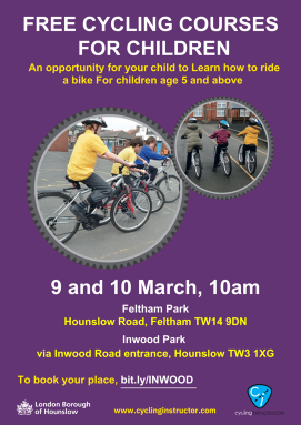Hounslow Council is offering FREE cycling courses this March for children in reception and above at Inwood and Feltham Park.