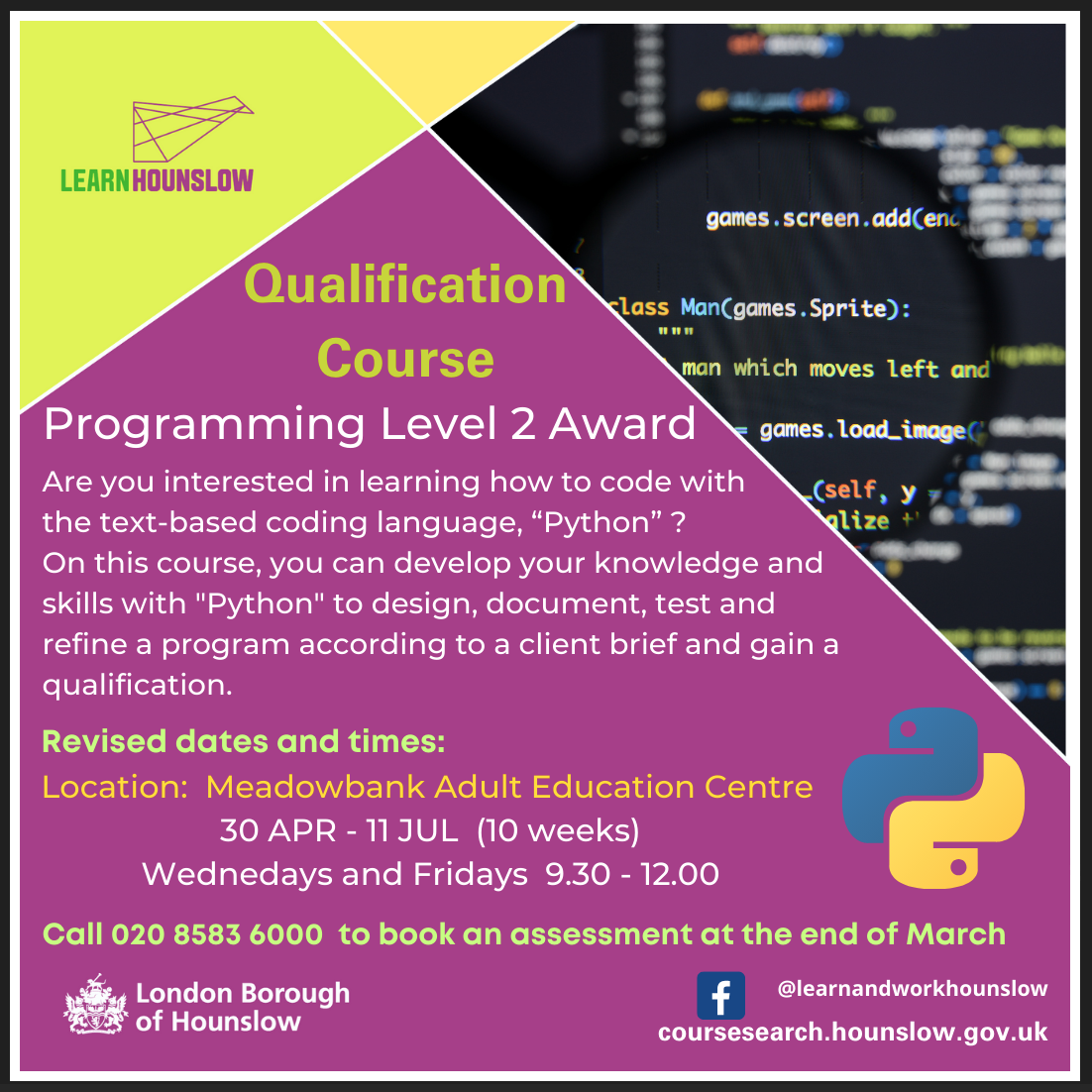 Book an assessment to enrol in any of these courses soon by calling Learn Hounslow at 020 8583 6000.