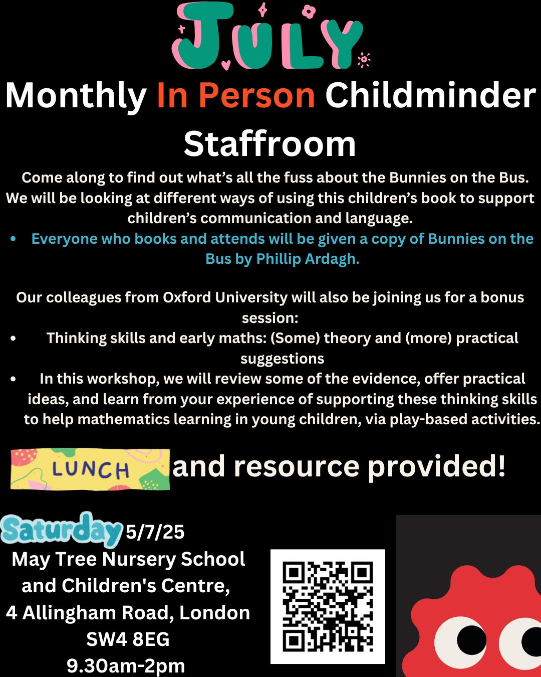 Please see below flyer for our fully funded event on Saturday, 5 July at our partner setting: Maytree Nursery and Children's Centre, SW4 4EG.