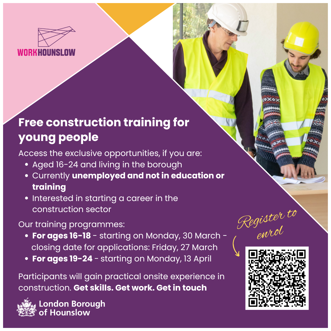 Young people aged 16-18 who are interested in learning a trade or a career in construction can enrol in a training programme, which will start on Monday, 30 March and run for 12 to 17 weeks, depending on individuals' progress.