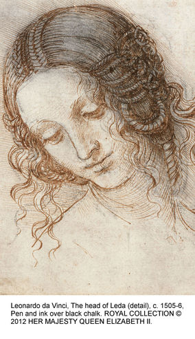 chariots fitted with flailing clubs, a study of the head of Leda, a drawing of